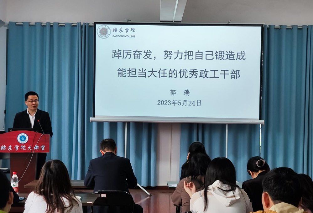 应用工程系党总支负责人郭瑞以《踔厉奋发,努力把自己锻造成能担当大任的优秀政工干部》为题,勉励全体辅导员要政治过硬、对党忠诚,业务精通、本领高强,敢于担当、勇于负责,敢于斗争、善于斗争,作风优良、清正廉洁。
