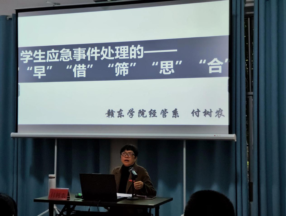 经济与管理系党总支负责人付树农给全体辅导员开展了首场培训,以《学生应急事件处理的方式方法》为主题,提出“早”“借”“筛”“思”“合”的学生应急事件处理的“五字法则”。
