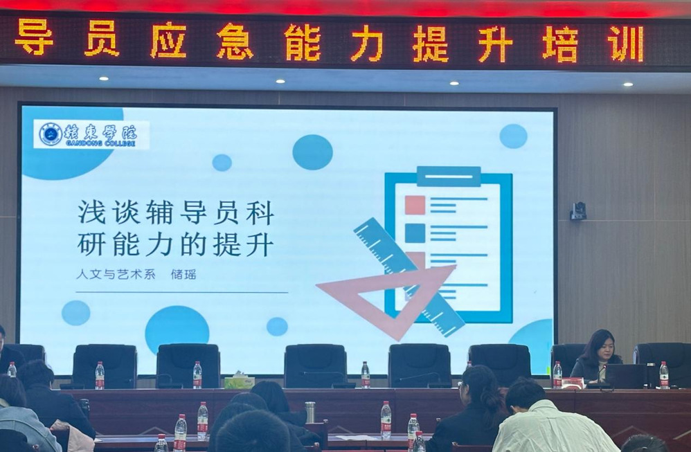 人文与艺术系党总支负责人储瑶以《浅谈辅导员科研能力的提升》为题,阐述了科学研究过程中的具体方法,为辅导员开展科学研究提供了新方法和新思路。
