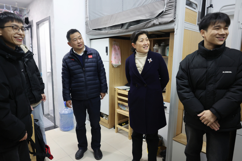 走访期间,校领导与同学们亲切交谈,仔细询问新生搬迁到新校区后的生活感受和适应情况。学生们纷纷反馈,新校区宿舍空间宽敞、采光很好,公共区域设施完备,食堂餐饮品类丰富多样,生活体验十分不错。陈克胜鼓励大家要尽快融入新环境,明确学业目标,以饱满的热情和积极的心态开启新学期的征程。